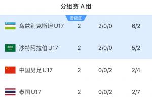体育资讯04月07日讯 U17亚洲杯小组赛A组2轮战罢,国少与泰国U17均两连败提前出局,分列第三和第四。